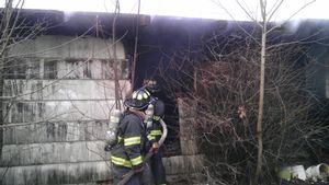The fire, in an abandon house, was fully involved upon Engine 21's arrival. Responders had to first remove a makeshift barricade of the driveway which included hoses and old stumps.